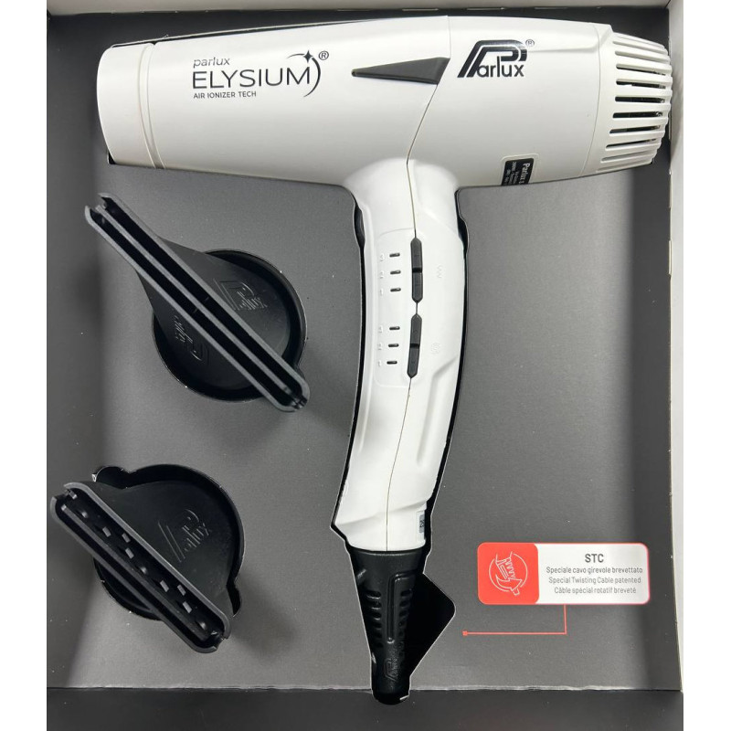 Фен Парлюкс Елізіум оснащений безщітковим цифровим двигуном нового покоління – це спеціально розроблений мініатюрний двигун турбінного типу, який працює з частотою 110 000 оборотів в хвилину. Це дозволило зробити фен максимально компактним та крихітним, а продуктивність повітряного потоку значно перевершує стандартні моделі. Фен дуже легкий, ним зручно користуватися за будь-яких умов, він не створює багато шуму в роботі.